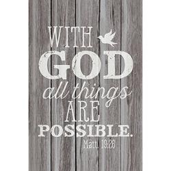 Elegant wall decor features inspiring words and artistic display design. Elongated column for center design with the words "With God all things are possible" scripted in beige right on the plaque. 6" x 9".