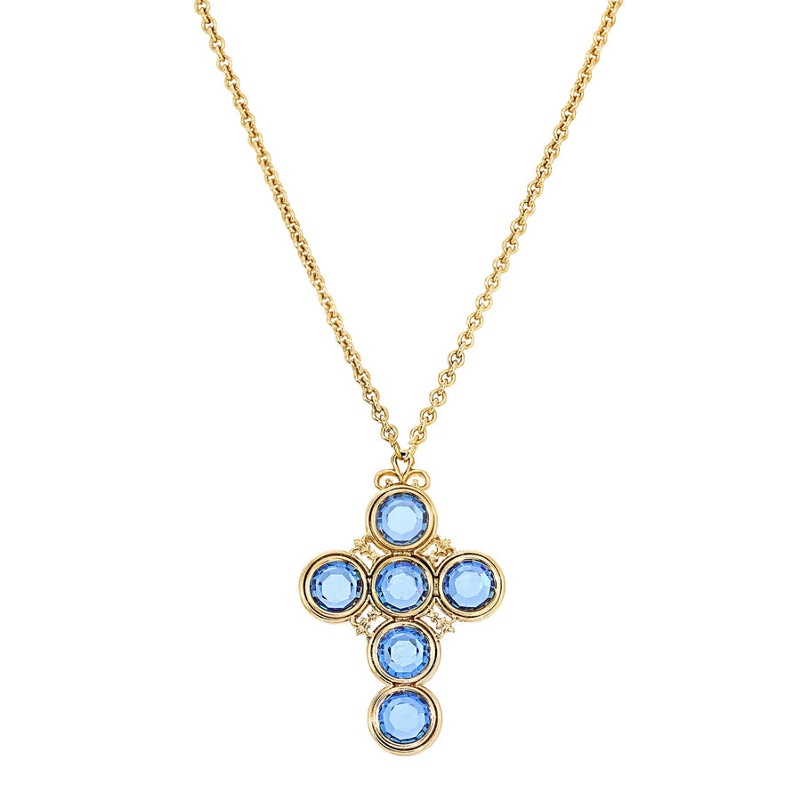 Blue Channel Cross Pendant Necklace