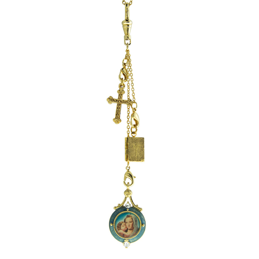 Cross, Bible, Mary & Child Charm Drop Necklace