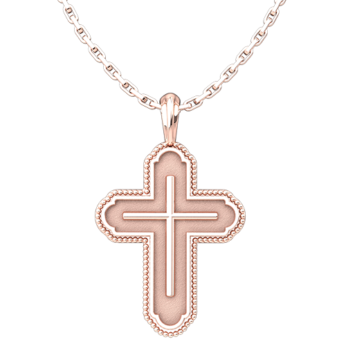 Rose Gold Plated Cross In Cross Bead Edges Sterling Silver Pendant