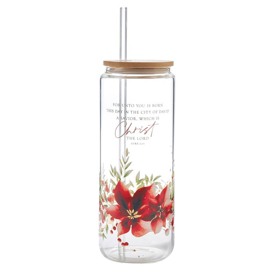 Celebrate the spirit of the season with our beautiful eco-conscious Glass Tumbler, featuring Luke 2:11: 'For unto you is born this day in the City of David a Savior, which is Christ the Lord.' Paired with a glass straw and bamboo top, each sip becomes a moment of pure refreshment, infusing your drink with the crispness of the season. It's more than just a tumbler, it's a vessel of heavenly inspiration. Crafted with sustainability in mind, it offers an eco-friendly alternative for your daily hydration.