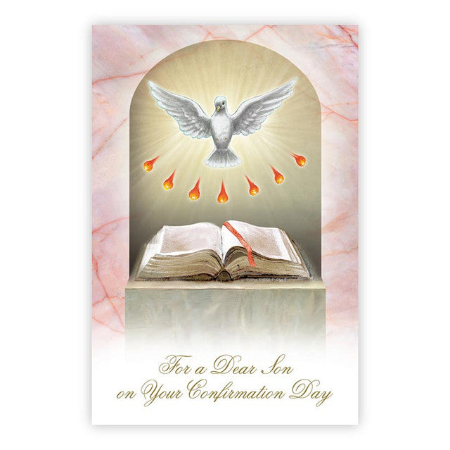May the Holy Spirit fill you, Dear Son, on your Confirmation Day, and guide you through your future as you follow in His way. May His peace be with you always, and His grace enlighten you. And may you always feel His love, in all you say and do! - Romans 15:13