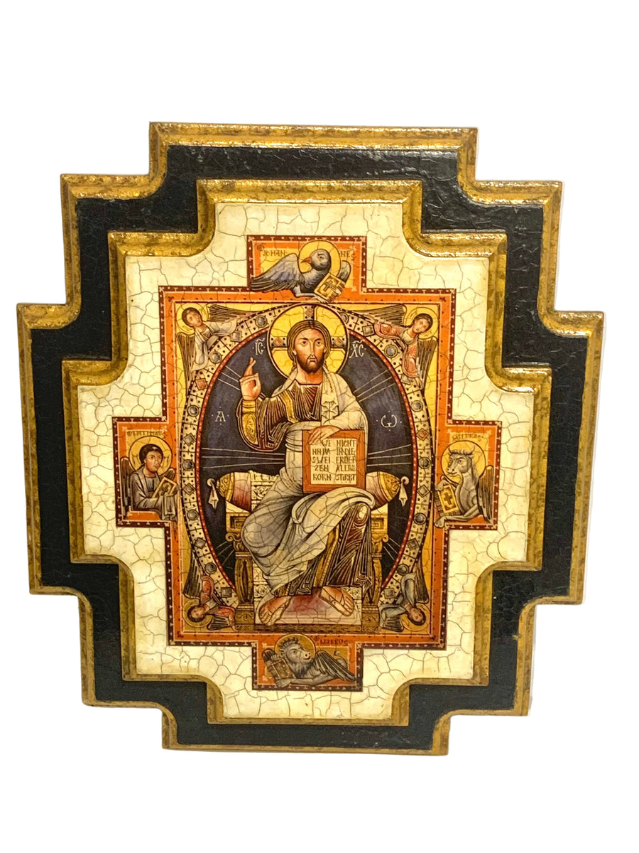 10.75"Wooden Christ Pantocrator Gold Double Wall Cross