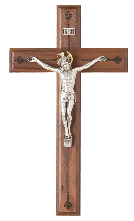 Walnut crucifix with Salerni corpus and laser engraving, 11″