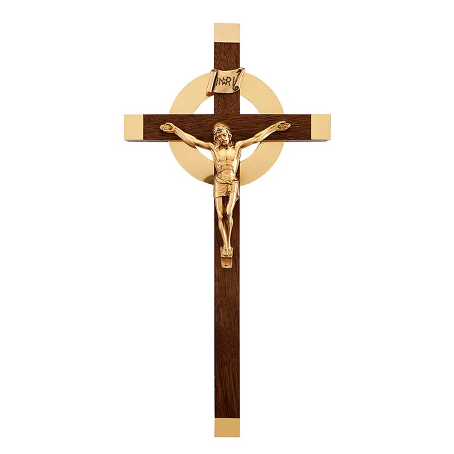 This crucifix from Jeweled Cross features a walnut cross with an exclusive, gold finished corpus, polished sunburst and ends. Comes gift boxed for easy gift-giving.