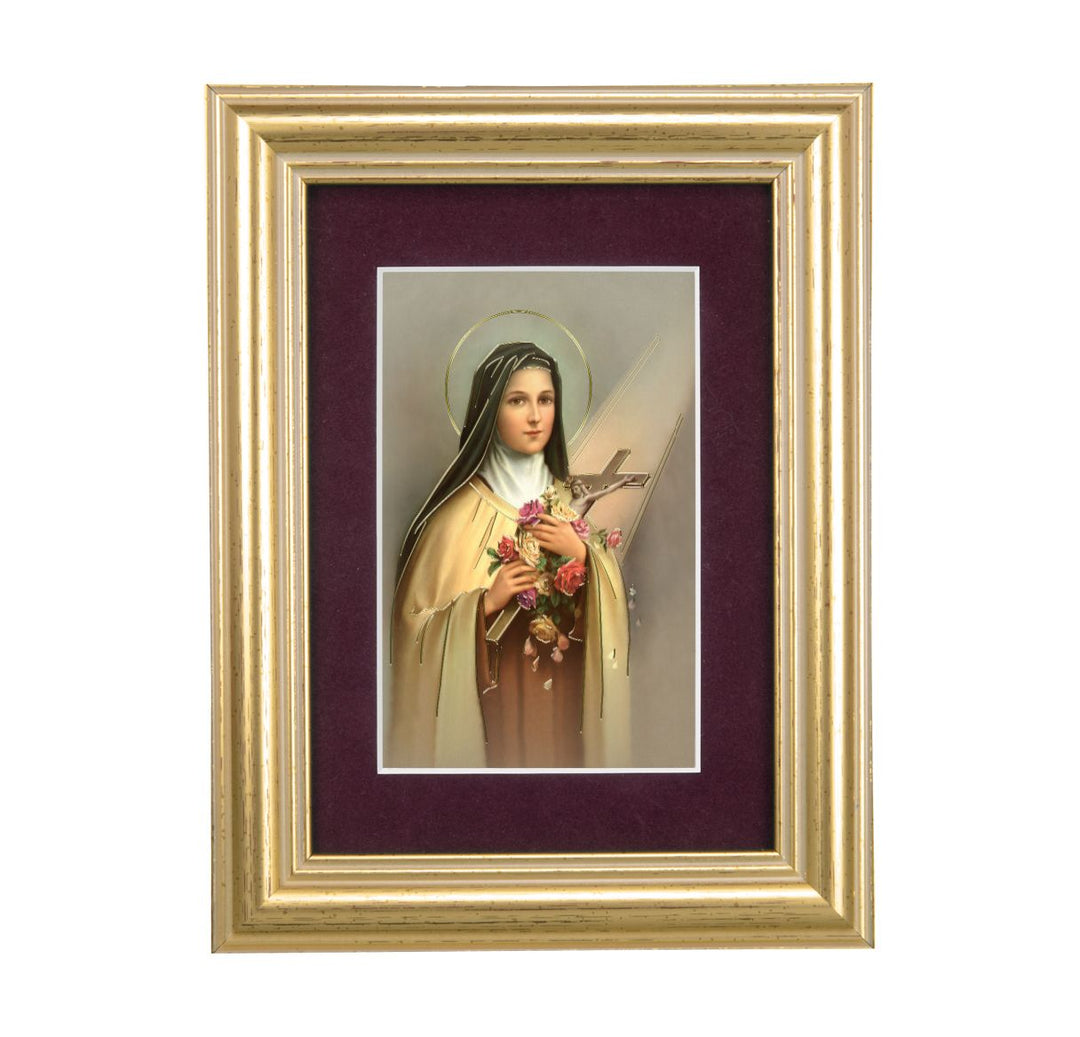 6.5" Gold Frame & Maroon Matte with Saint Therese of Lisieux Print