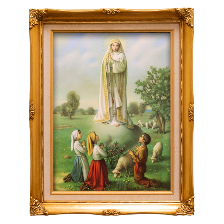 These beautiful framed wall art pictures are reproduced from the original of leading religious artists including the world famous Simeone. They are made in Milan, Italy by Cromo, N.B. Catholic Inspirational Gifts. Each picture has a lovely 13 x 17 linen print and is set inside an antique gold wood frame with linen liner.