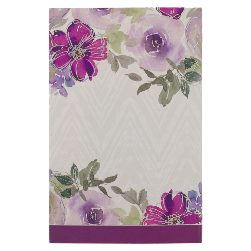 With its stunning design, Whispers of Wisdom Softcover Devotional will surely be a beautiful addition to your bookshelf or nightstand. The cover features a lovely purple floral design that frames the top and bottom, while the title is elegantly displayed in pink lettering in the center.