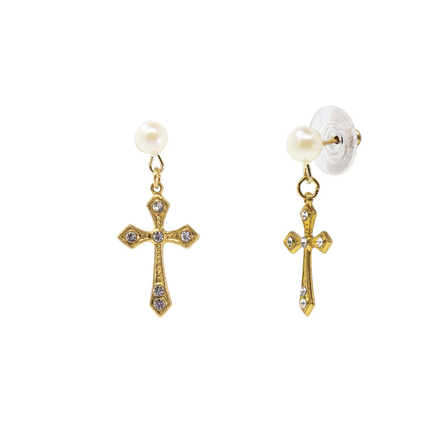 Show your faith anywhere you go in style with this set of cross drop earrings! A terrific embodiment of the fusion between fashionable style and true faithful devotion. This set of earrings feature a intricate designed cross with crystals, which hang from hoops