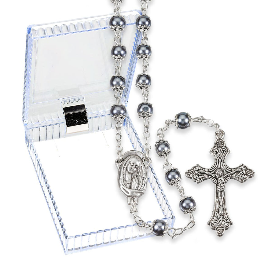 - 5mm Double Capped Hematite Imitation Pearl Glass Bead Rosary