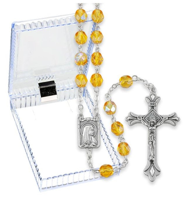 6mm Topaz Glass Bead Rosary with Deluxe Center and Crucifix
