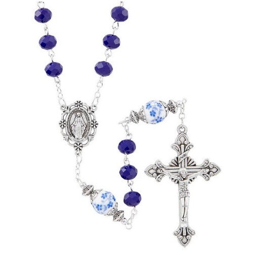 Material: 6x8mm Glass Beads, 10mm Double-Capped Painted Flower Ceramic Our Father Beads
