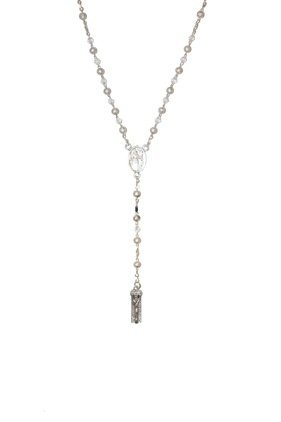 7mm Clear Crystal San Juan Capistrano Rosary with Rectangular Crucifix
