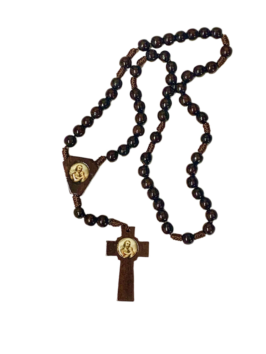 8mm brown wood beads chaplet with St. Joseph & Child image