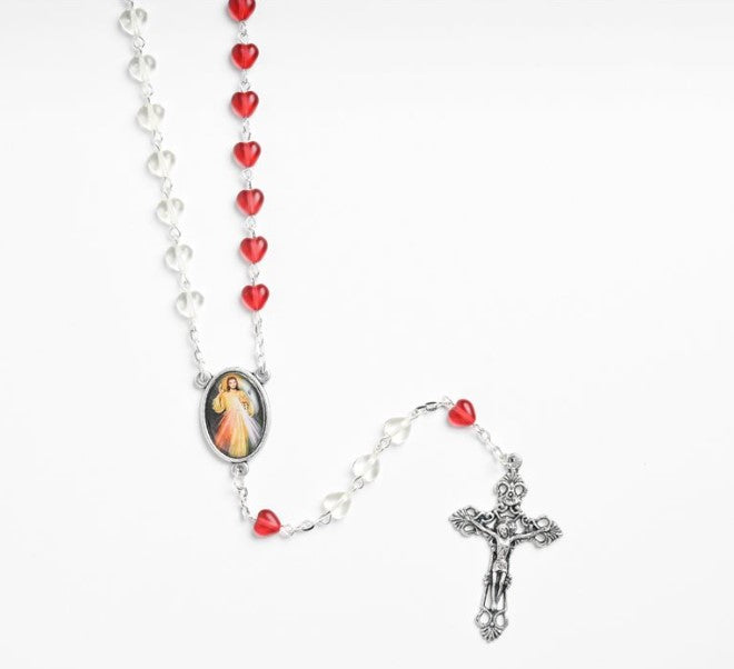 8mm Red & Clear Crystal Heart Divine Mercy Rosary
