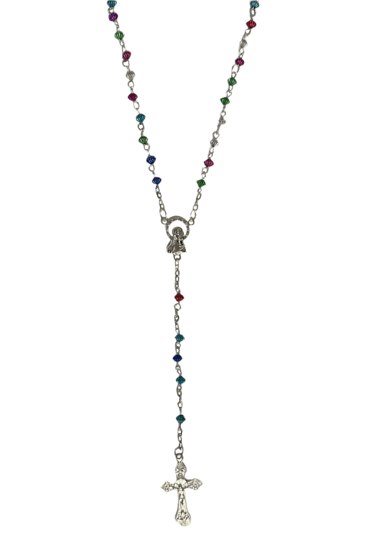 4MM Multicolor Beads.  Rosary comes in acrylic cross case.