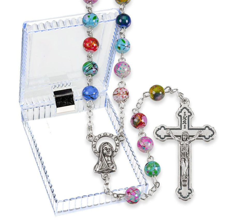 - 6mm Multicolored Speckled Glass Bead Rosary.