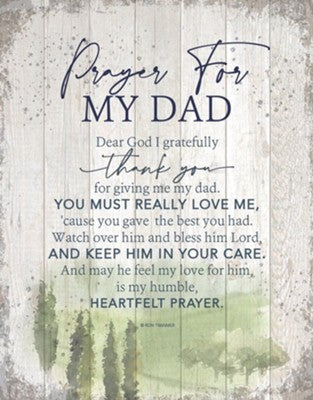 Prayer for my Dad - Dear God I gratefully thank you for giving me my dad. You must really love me, 'cause you gave the best you had. Watch over him and bless him Lord, and keep him in Your care. And may he feel my love for him, is my humble, heartfelt prayer.