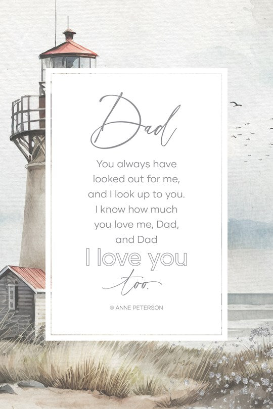Beautifully illustrated in muted tones with an inspiring verse bring sentiments of encouragement. These are a refreshing addition to any desk, dresser, end table or shelf. Each plaque comes individually boxed and has a metal hanger and easel on the back. MDF Wood 6 inchx9 inch. Dad you always have looked our for me, and I look up to you, I know how much you love me, Dad, and Dad I love you too Anne Peterson . Dexsa Ltd. has been manufacturing unique products for the gift market for over twenty-five years