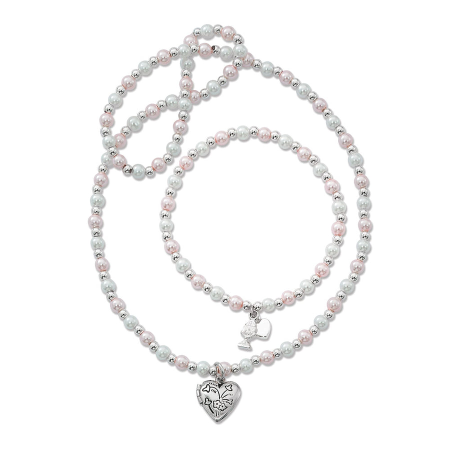 Pink/White Pearl Heart First Communion Set