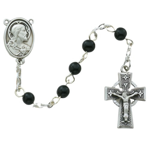 Sterling Silver Black Celtic First Communion 5mm Rosary