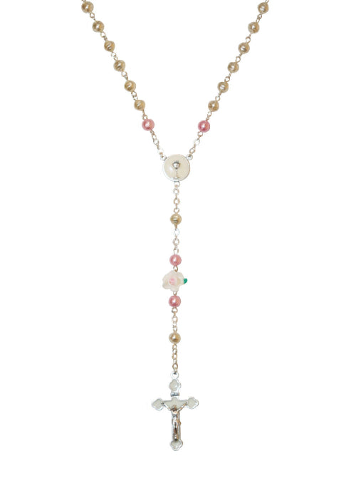 White and Pink Pearl First Communion Rosary