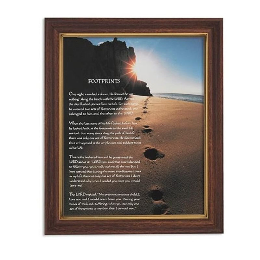 Footprints 10" x 12.5" Framed Print - Wood Tone