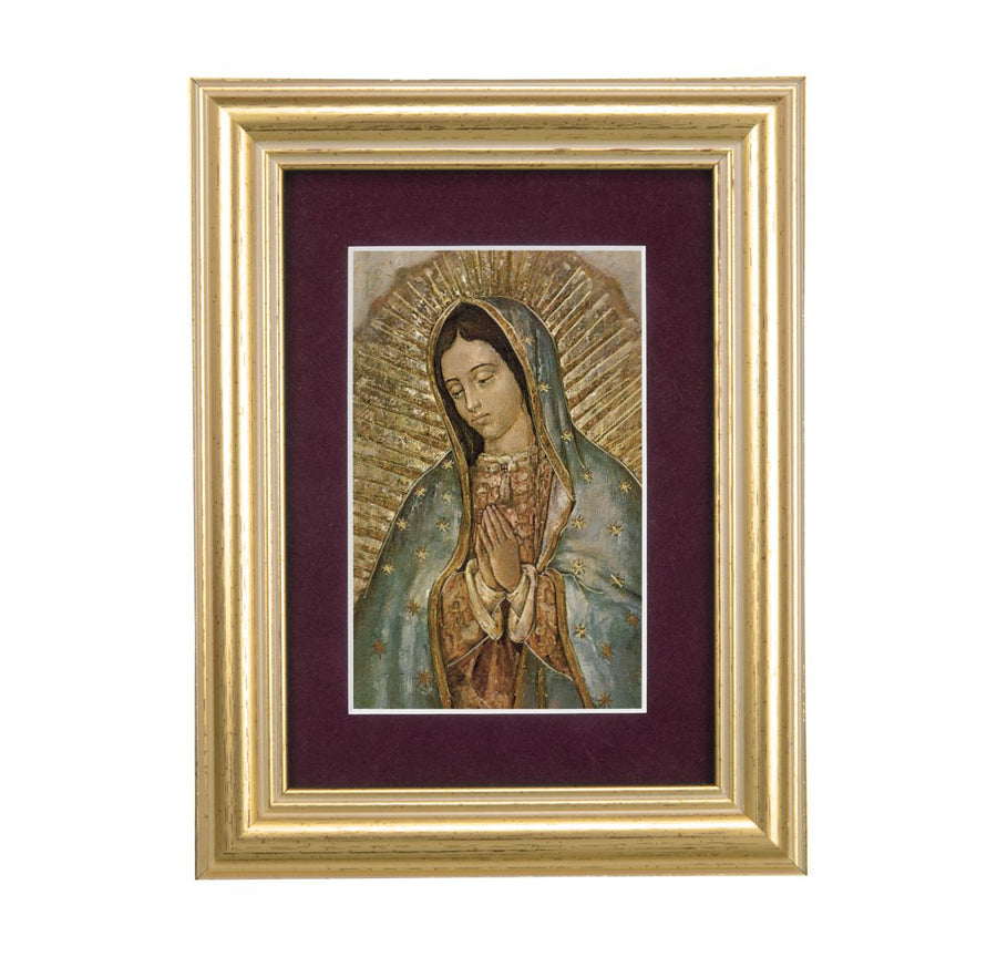 Gold Leaf Frame Burgundy Matte with Our Lady of Guadalupe Print
