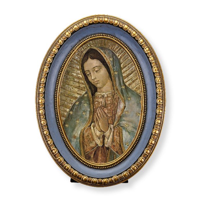 5.5"x 7.5" Oval Gold-Leaf Frame with an Our Lady of Guadalupe Print
