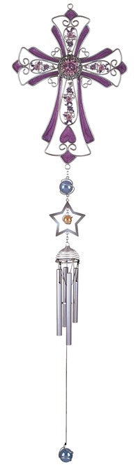 36" Purple Silver Cross Wind Chime