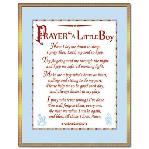 This quaintly illustrative prayer plaque will be play a helpful role in the formation of a newly baptized Catholic! The dimensions of this plaque: 8" x 10". This adorable plaque makes a perfect gift for any little boy's baptism!