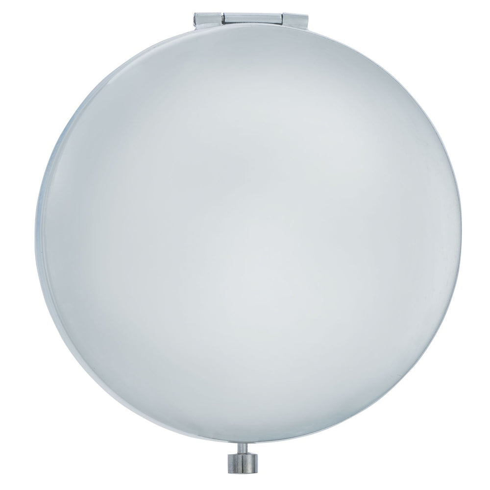 The hinged mirror clips close with a clasp button mechanism to keep it securely shut. Inside, you will find both a standard and a magnifying mirror. The sturdy metal body means it will endure lots of wear and tear.
