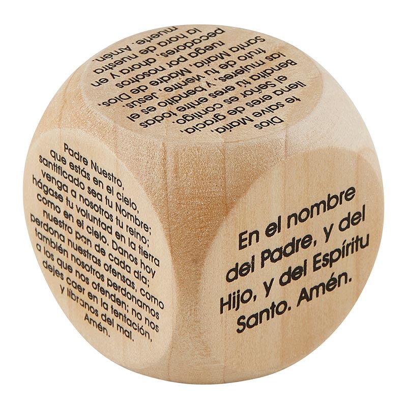 This solid wood prayer cube features our most popular Catholic Prayers in Spanish.