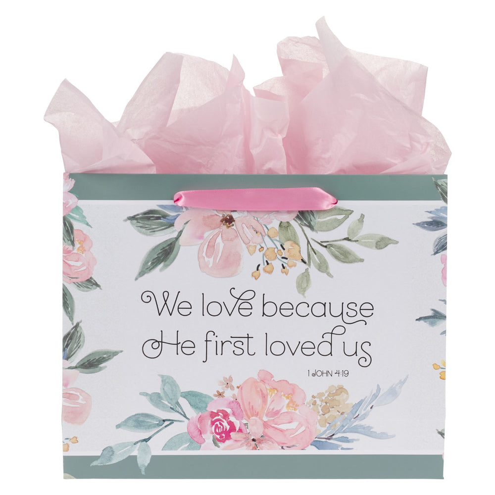 He First Loved Us Large Landscape Gift Bag with Card Set - 1 John 4:19