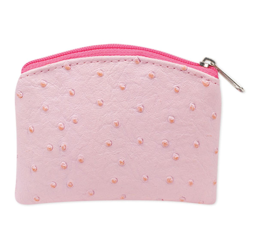 - Pink Ostrich Skin Leatherette Rosary Pouch.