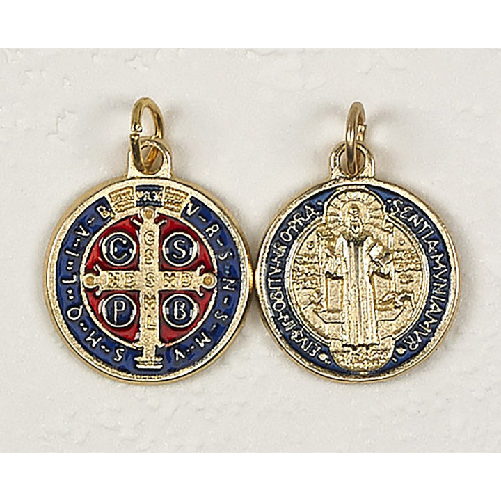 0.75" Gold Tone & Dark Blue St. Benedict Enameled Medal