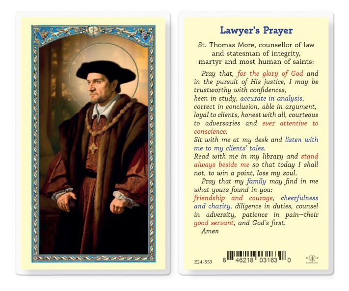 • Saint Thomas More - Lawyer's Prayer laminated Holy Card.