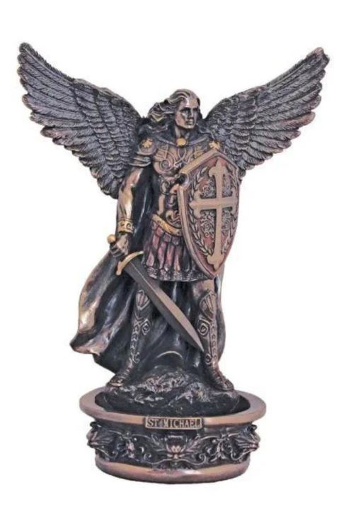 8.5" St. Michael Holy Water Font in Cold Cast Bronze