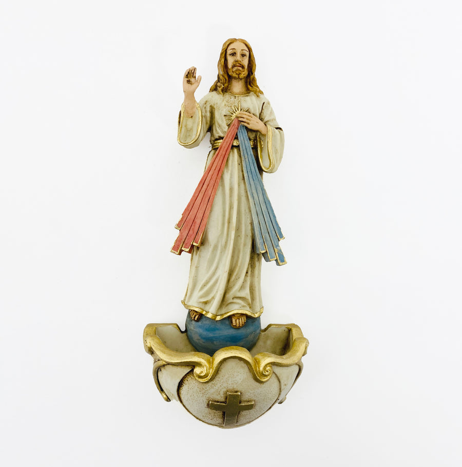 Introducing our exquisite Divine Mercy Holy Water Font, a testament to timeless craftsmanship and devotion. Handcrafted and hand-painted in the heart of Colombia, this beautifully designed wall font features intricate details and vibrant colors that capture the essence of faith and reverence. Perfect for any sacred space, it provides a serene place to keep holy water and serves as a daily reminder of divine grace. Each piece is uniquely created, reflecting the skilled artistry and spiritual dedication of its maker. Elevate your home or church with this elegant symbol of faith.
