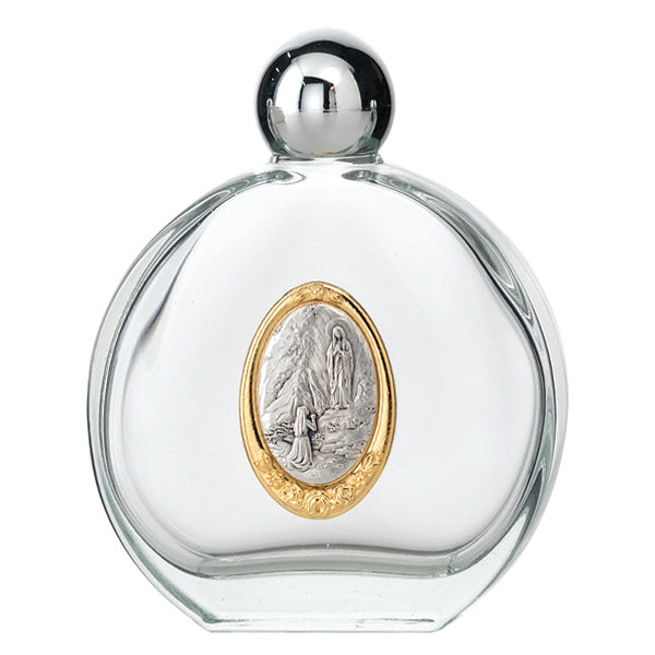 4" Our Lady of Lourdes Large Glass Holy Water Bottle