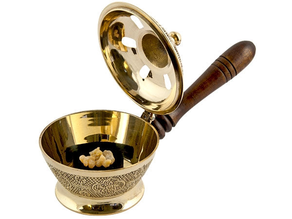 8" Brass Censer Burner with Wooden Handle