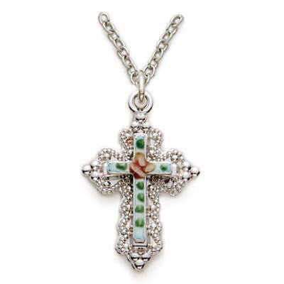18" Sterling Silver Cloisonne Enamel Cross Chain