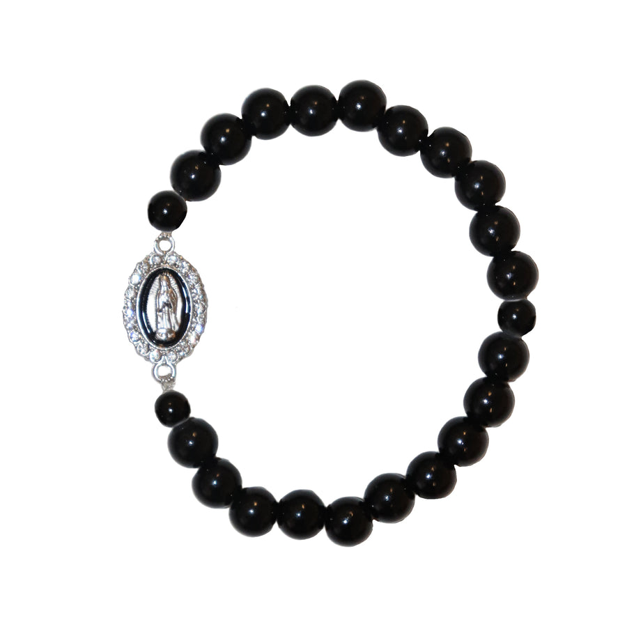 8mm Black Onyx Bracelet with Our Lady of Guadalupe Charm