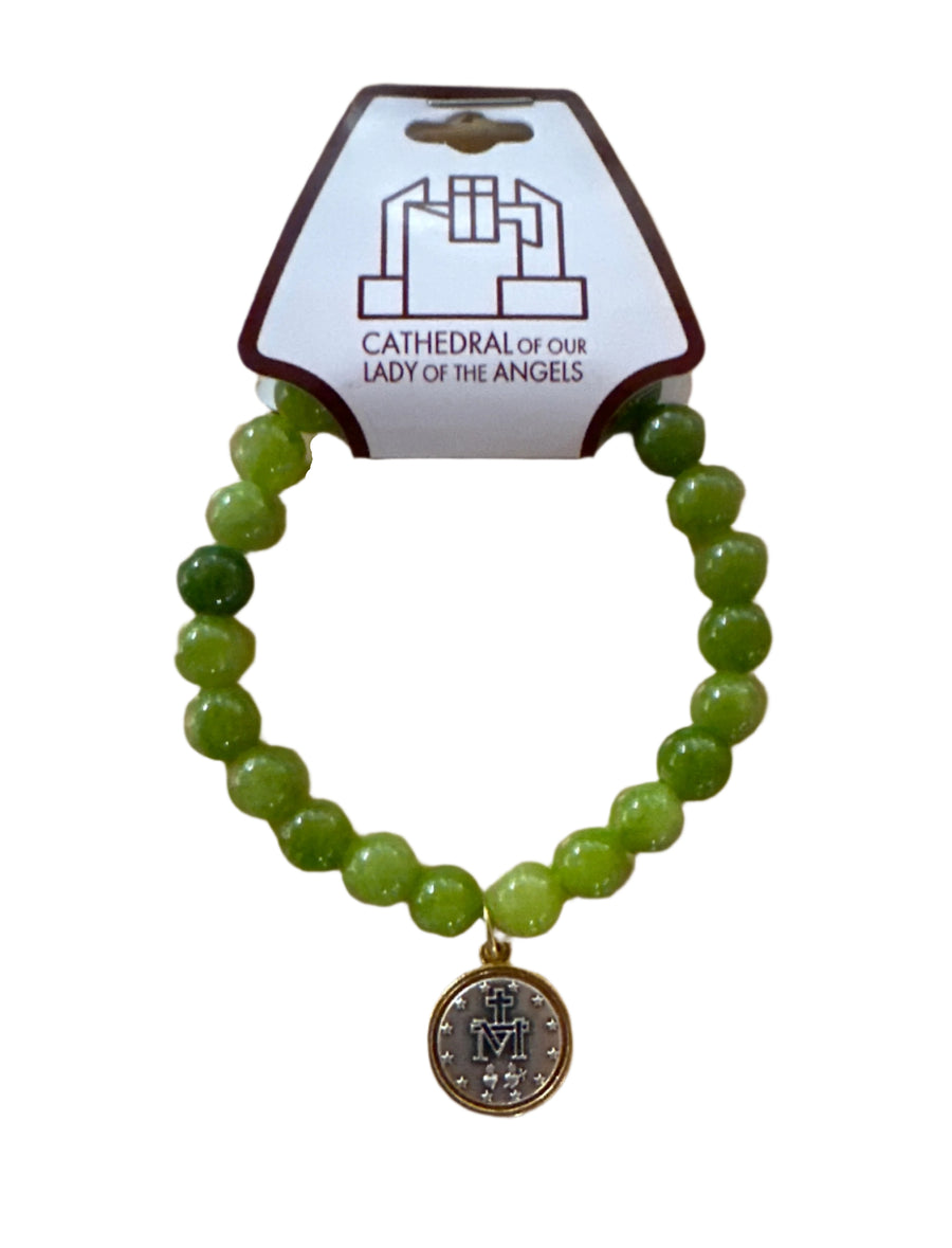 8mm Peridot gemstone bracelet with 2-tone gold and silver St. Benedict medal