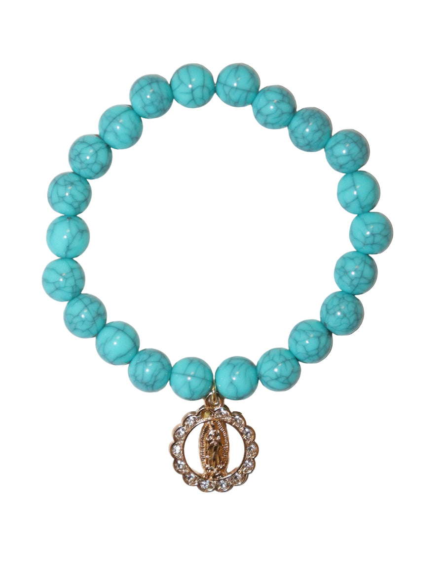 8mm Turquoise Bracelet with Our Lady of Guadalupe Charm