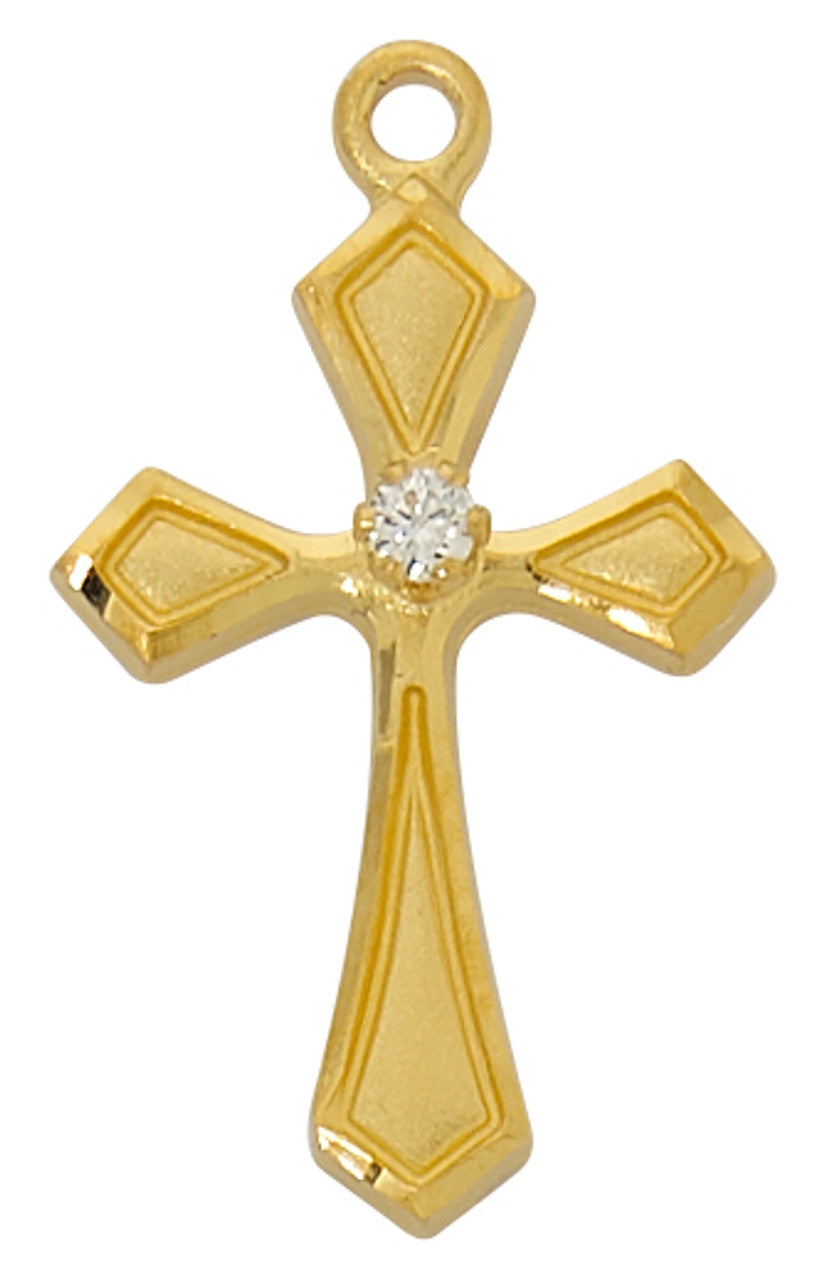Gold/Sterling Silver Ornate Cross with Cubic Zirconia