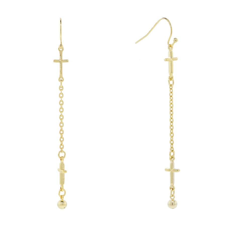 Make a meaningful statement with this pair of gold tone linear cross earrings. These cross drop earrings would make a thoughtful gift anytime of the year.