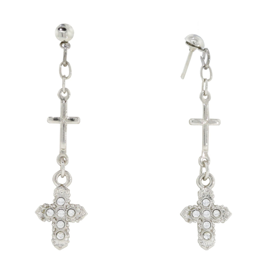 Stylish and symbolic. These sparkling cross dangle earrings are set in silver tone mixed metal.