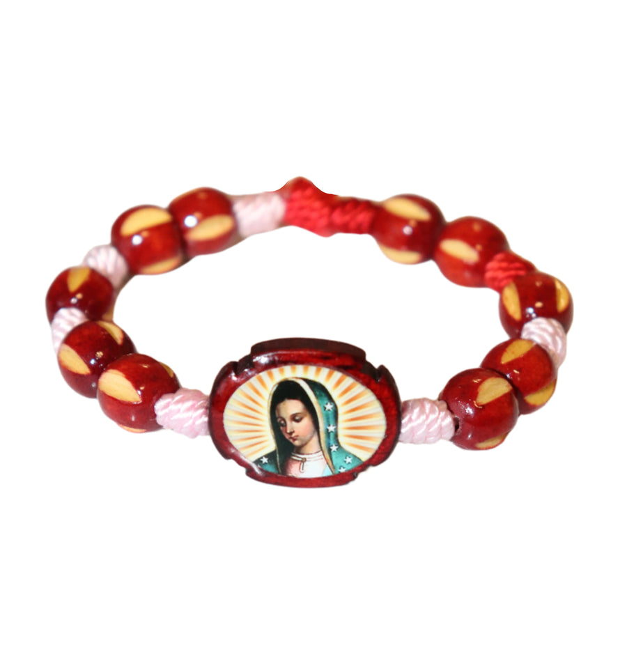 Pnk/Red Adjustable Wood Corded Guadalupe Bracelet