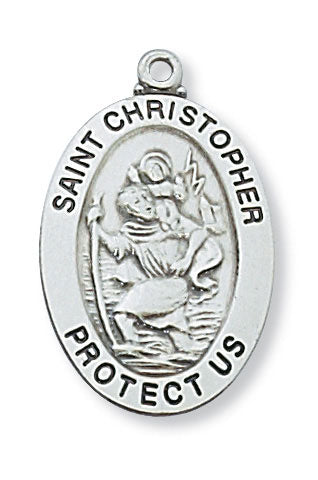 St. Christopher Sterling Silver Medal on 20" Rhodium Plated Chain